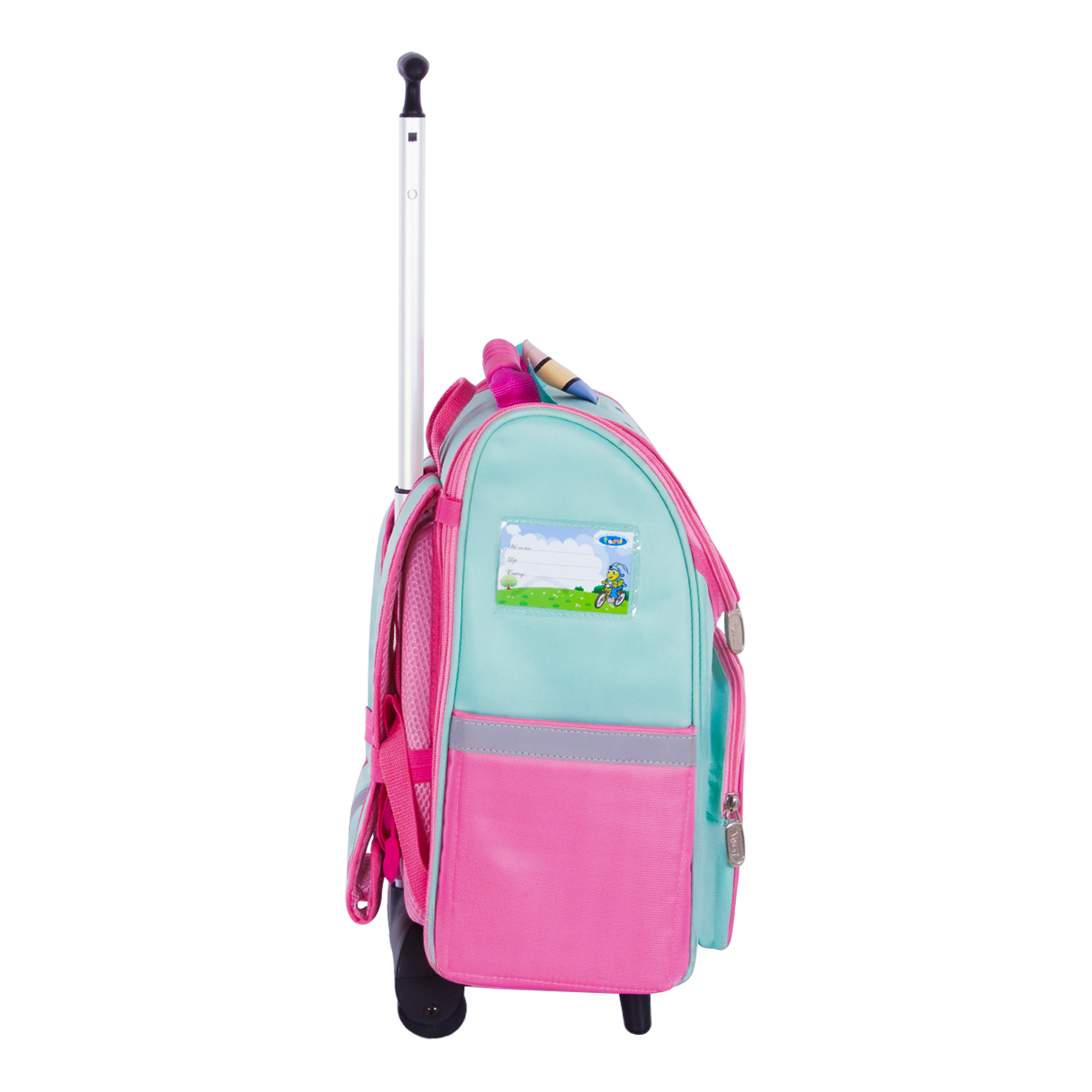 - Cần kéo và bánh xe chuẩn Năm Sao êm nhẹ giúp bé dễ dàng di chuyển, không phải mang vác nặng trên vai.