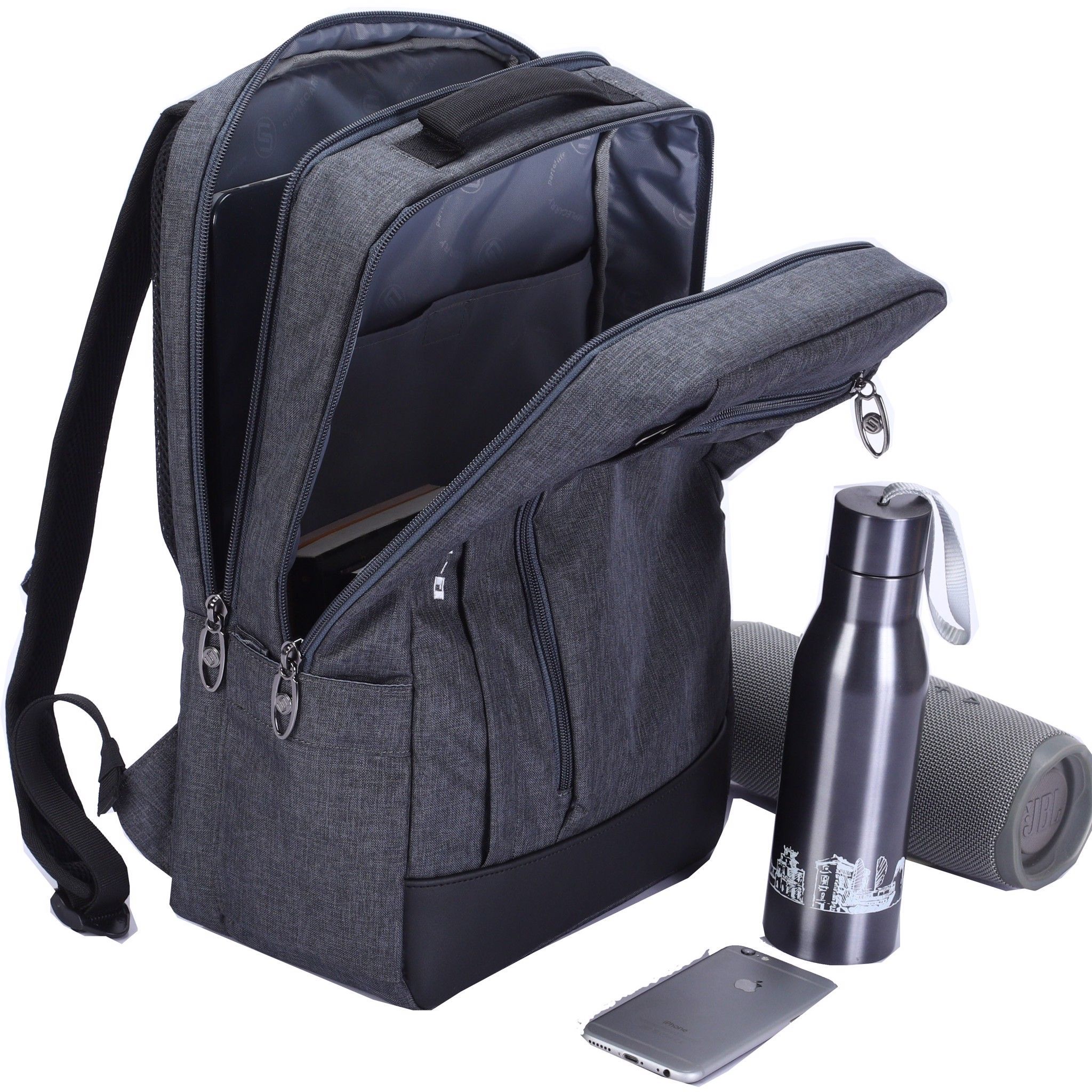 - Balo chia thành 1 ngăn chính và 3 ngăn phụ rộng rãi để chứa các đồ dùng cần thiết. Phía bên trong có phân các ngăn dắt viết, ngăn điện thoại, ngăn laptop có mút PE chống sốc, ngăn lưới đựng adapter. Bên hông balo được trang bị thêm 2 ngăn có thể chứa bình nước, ô dù,... Phía trước có 2 ngăn với đầu khóa kéo, đính logo thương hiệu SimpleCarry, bên dưới trang trí bằng simili cao cấp.