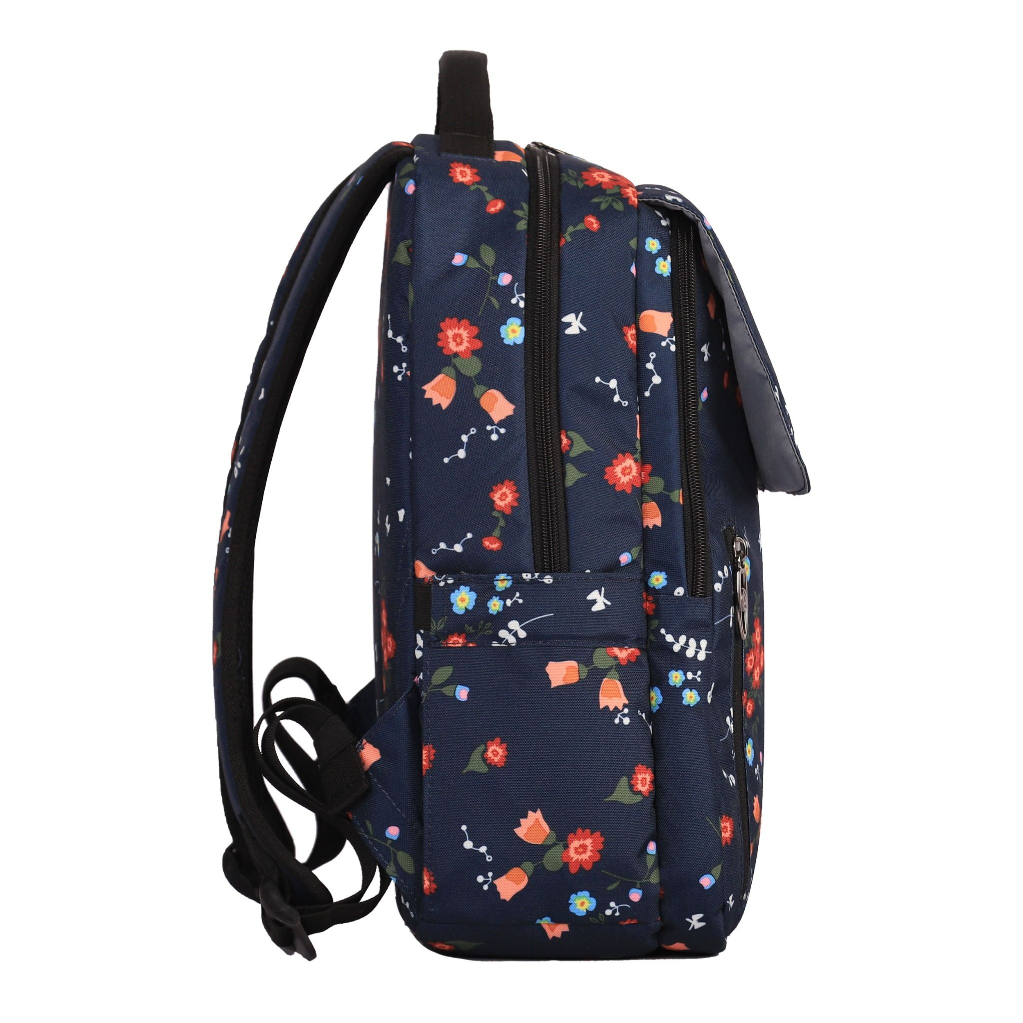 - Ngăn phụ ở phía trước, được chia thành các ngăn nhỏ để phụ kiện rất tiện dụng. Hai ngăn nhỏ bên hông để vừa chai nước loại nhỏ hoặc găng tay, khẩu trang...